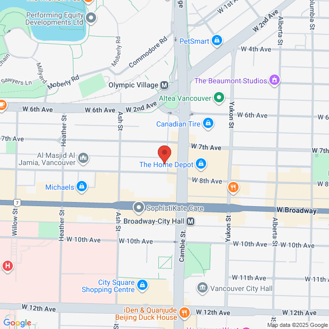 Echelon Centre underground parkade is located off Ash Street between West 7th and West 8th Ave.